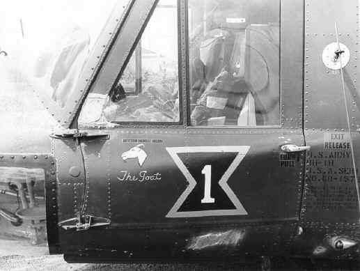 Though some Hueys sported markings on them from time to time, they were particular to that one helicopter. There was no separate marking to denote their belonging to the Flying Circus until some time in 1970 when the Brigade Commander’s aircraft began sporting the Brigade crest on the cockpit doors.