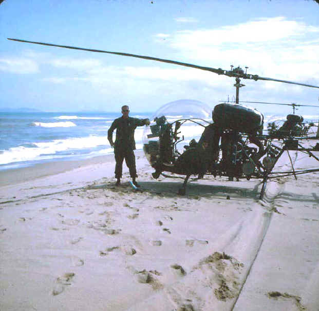 The following two photos are of an OH-13 belonging to the HHC, 2nd Brigade. These were taken at LZ English in the Bong Song area in 1967 by Steve Rocket of an aircraft flown by him.