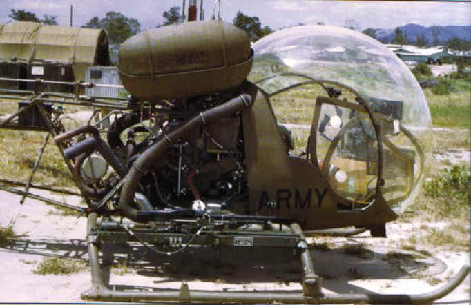 When the unit arrived in Vietnam all the OH-13’s they brought with them were the newer "S" model. Even though this model had more available power, the higher temperatures and density altitudes encountered in Vietnam left these helicopters just as short of power with the fixed gun system installed. These guns were not installed when the helicopters arrived in Vietnam in late 1965.