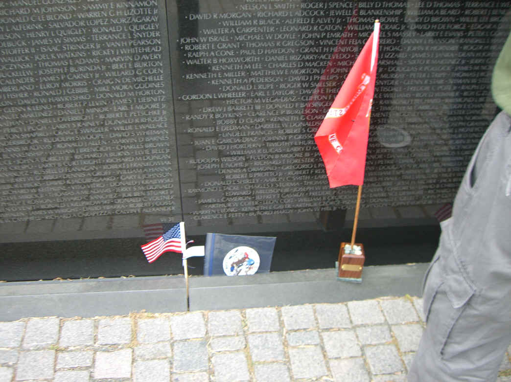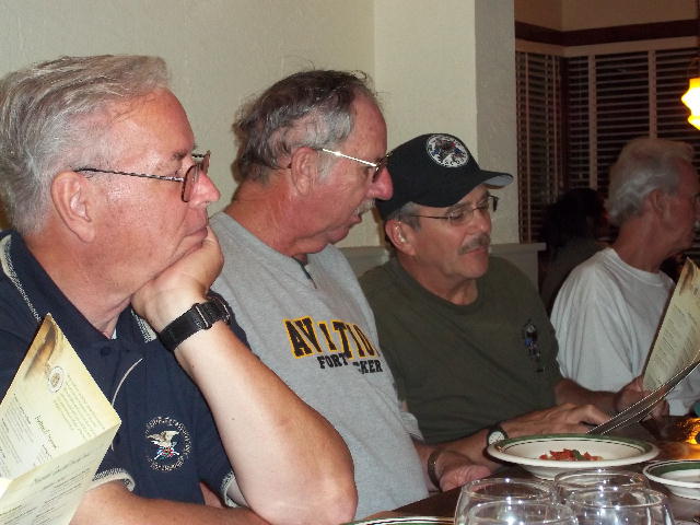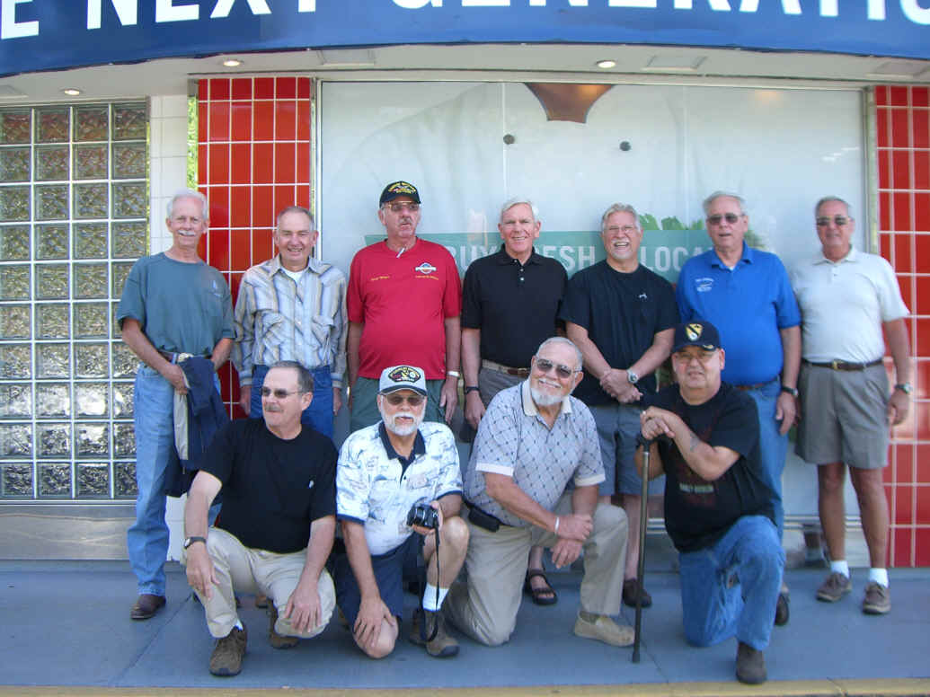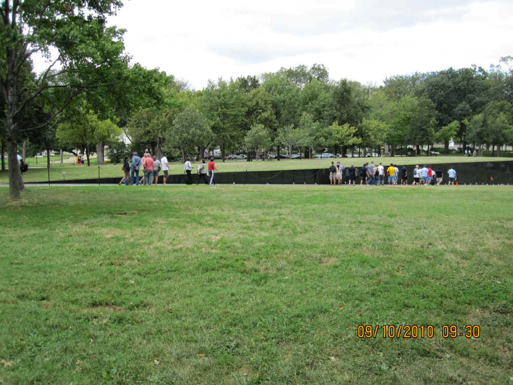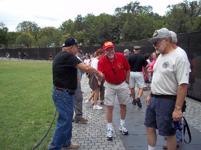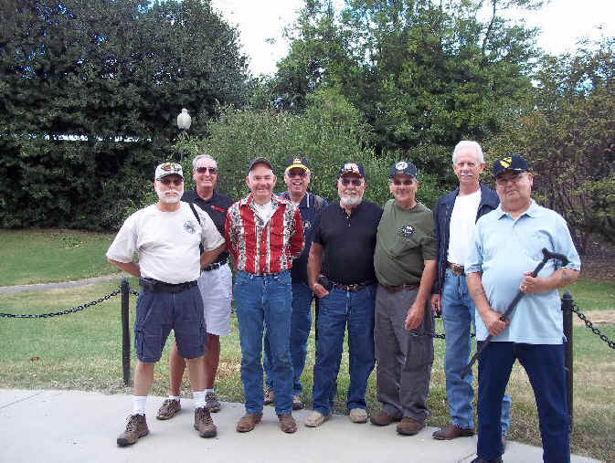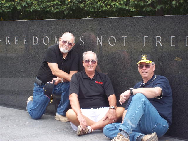 September 10, began with a breakfast pre-mission briefing prior to assaulting the Fairfax, Vienna Metro station for a trip downtown minus Gomer (who drove himself and missed the rest of us in DC) and Cowboy (who previously worked in DC and didn’t need to see this stuff again). After debarking at the Smithsonian Metro Station, we marched (route step) to the World War II Memorial and then on to The Wall. Sam Estes had prepared several Flying Circus Scout patches for all of us to sign and leave in respect for six fallen Flying Circus members enshrined there: Art Crosby (Chicken Man), Gregory A. Marvin (Tiny), John Berry (Mister Clean), Gaylord Kerr (Red), Billy K. Evans, and Richard T. Williams (Harry). At The Wall we met a large number of brother Vietnam veterans and exchanged pleasantries. We later divided forces with some of us going to the National Air and Space Museum mall facility and the balance visiting the Lincoln Memorial, the Korean War Memorial, the Roosevelt Memorial, and the Jefferson Memorial. The arrival of Bruce Brattain (Batman) and his significant other Debbie Scott completed the balance of the Flying Circus 2010 Reunion attendees. That evening the unit then travelled to the Olive Garden mess hall for a quality food event and good fellowship. The evening planning session was held at the Flying Circus Club on the patio of the hotel.