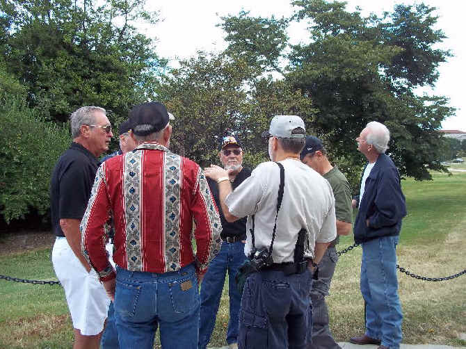 September 9 began with an early dispatching of Tumbleweed-plus to the White House. The rest of the Flying Circus-minus moved to the Silver Diner mess hall followed by re-assembly at the National Rifle Association’s Fire Arms Museum in Fairfax. This is a spectacular collection of fire arms dating back to before the American Revolution. The day marked the arrival of Bill Conway (Swamp Fox) and his bride Lydia as well as Harry Oberg (Cowboy) and his wife Jeanna Tendall. The planning session was continued that evening in Gomer’s hooch with re-fuelling by Pizza Hut and lubrication by adult beverages. Our open door policy was terminated with the arrival of the ladies from a Christian Tour group. We judged that our normal rude, crude and socially unacceptable behavior would be too “out there” for the Christian ladies, so the door was closed. Good call!