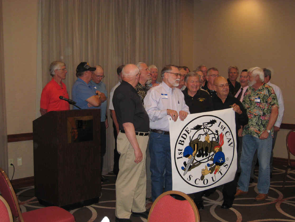 Frank Amos was not able to attend this reunion, so he sent along some very nice 1st Cav lapel pins for everybody. The pins were seen being proudly worn all through the area during the event.